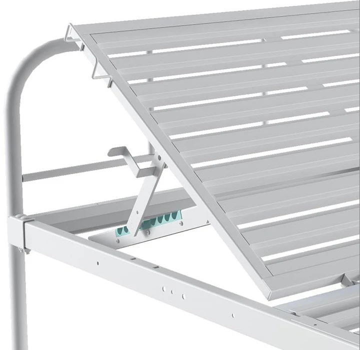 - Ложе 2020×900 мм изготовлено из металлических ламелей (горизонтальных реек) шириной 70 мм.