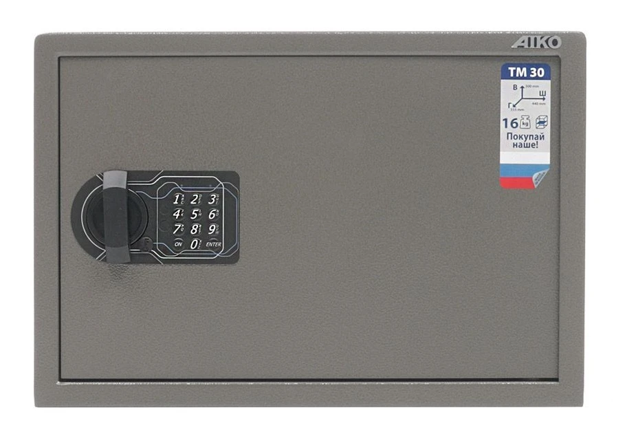- Сейф Aiko TM-30 EL предназначен для защиты ценностей, денег и документов в офисе или дома. Это доступный по цене для большинства покупателей сейф, который предоставляет своему владельцу достаточный базовый уровень защиты при небольшой стоимости.
